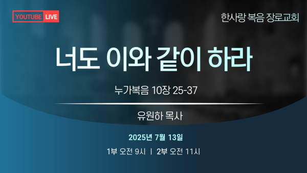 2025/07/13 너도 이와 같이 하라 ( 누가복음 10 : 25 ~ 37 ) 페이지 정보 작성자 최고관리자 댓글 0건 조회 840회 작성일 25-07-14 02:54 본문 목록 이전글2025/07/20 말씀의 고갈 ( 아모스 8:11~14 ) 25.07.21 다음글2025/07/06 심은대로 거두리라 ( 갈라디아서 6 : 7 ~ 10 ) 25.07.07 댓글목록 댓글목록 등록된 댓글이 없습니다.