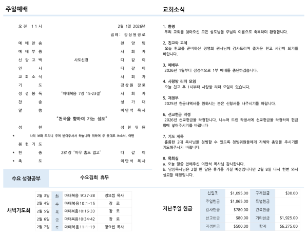 2026년 2월 1일 주보