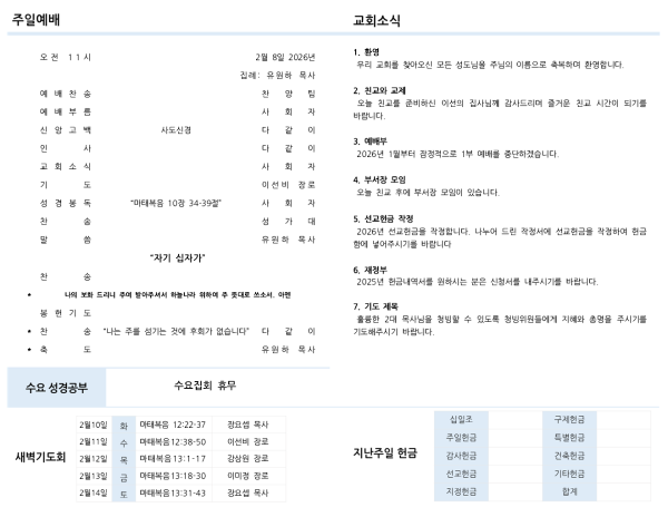 2026년 1월부터 잠정적으로 1부 예배를 중단하겠습니다.